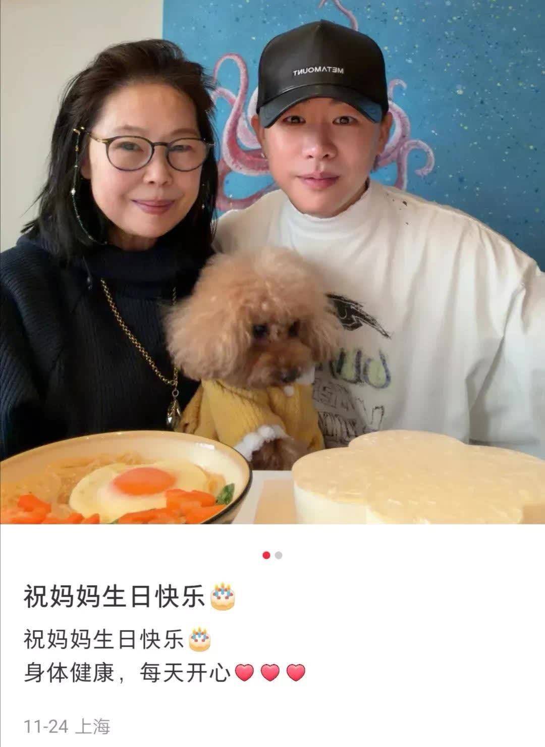 两人从马尔代夫回国后,24号胡彦斌在上海给妈妈过生日。